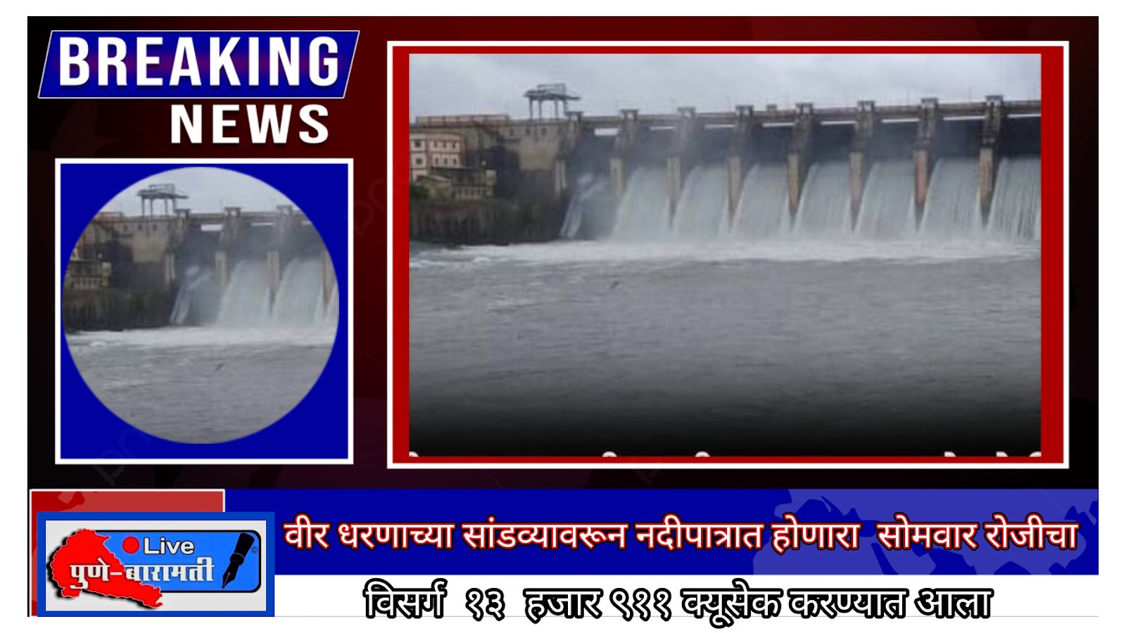 वीर धरणाच्या सांडव्यावरून नदीपात्रात होणारा सोमवार रोजीचा विसर्ग १३ हजार ९११ क्यूसेक